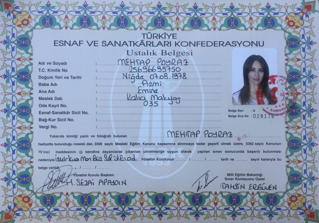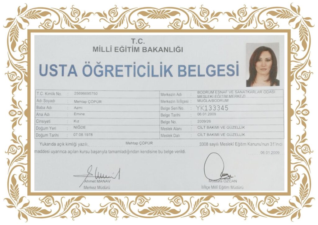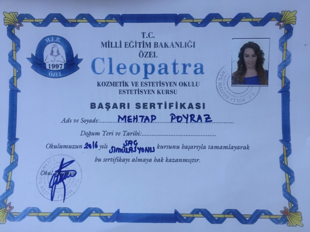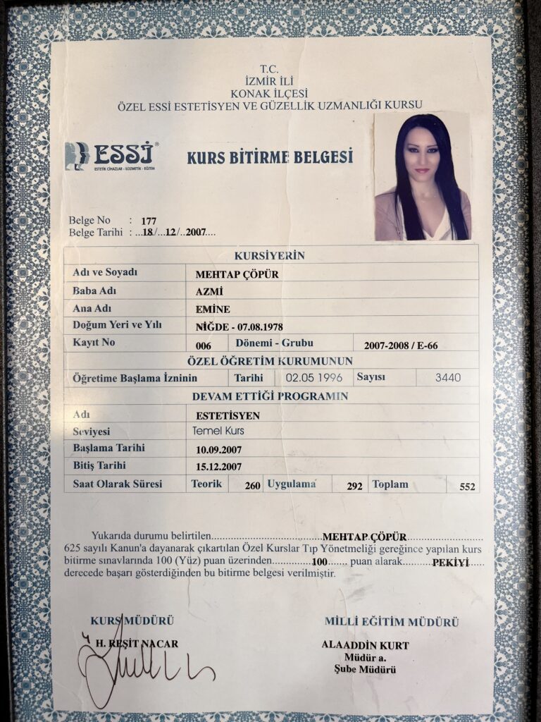 İzmir’de estetisyenklik eğitimlerinin ardından M.E.B’den usta ve usta öğrenci belgelerini alarak Uzman Estetisyen Eğitmen ve Kalıcı Makyaj Uzmanı ünvanlarını almıştır. Uzmanlık alanlarında bir çok dalda işlem yaparak;